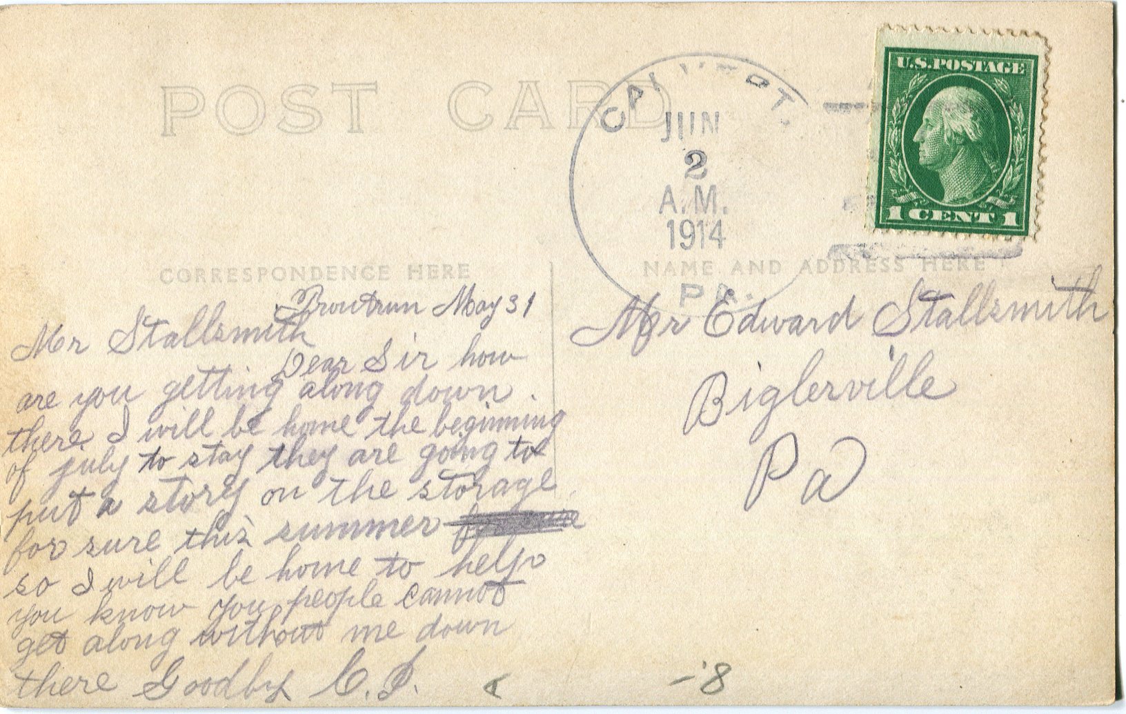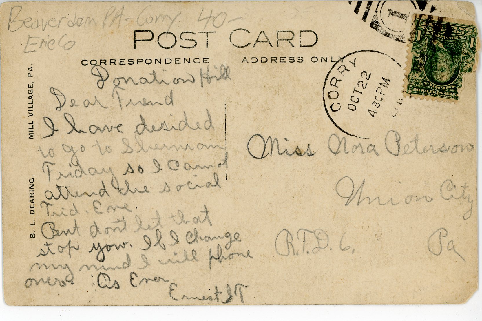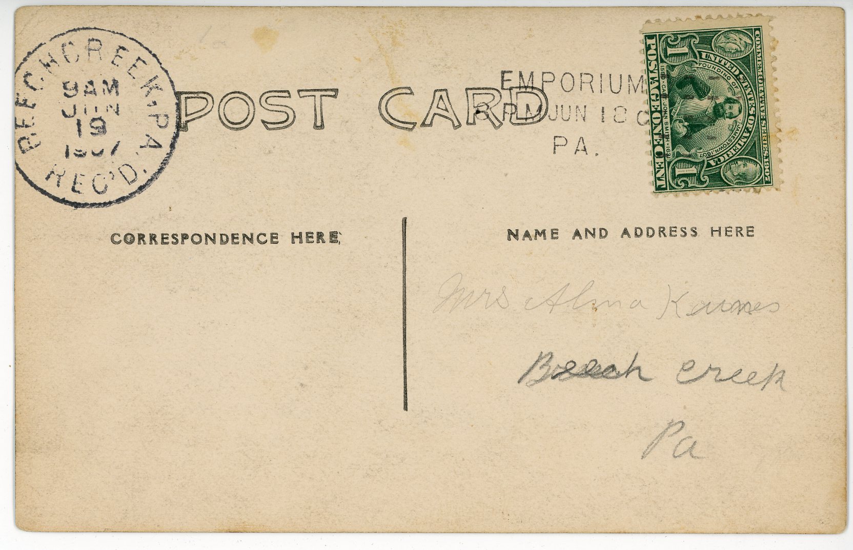 Class of ’07, postmarked Emporium, Cameron County, PA